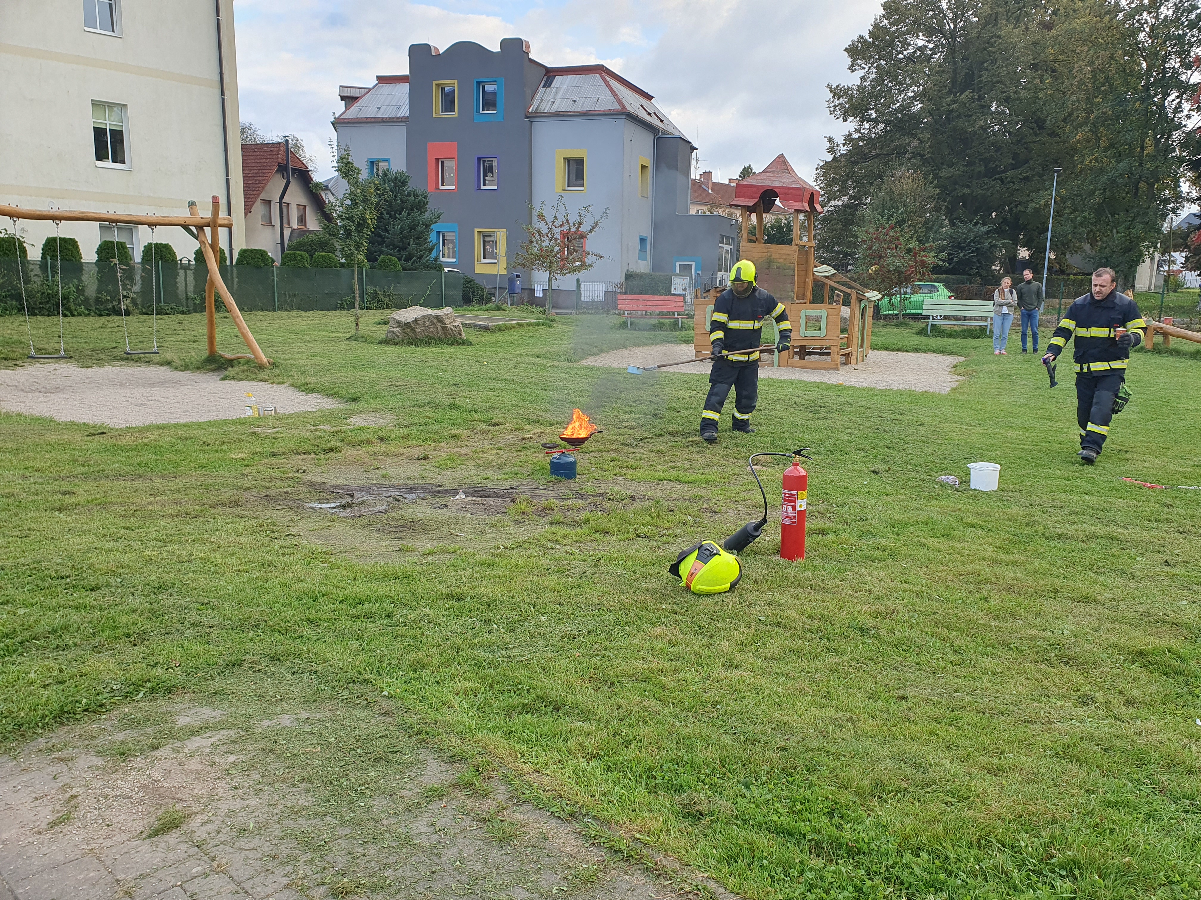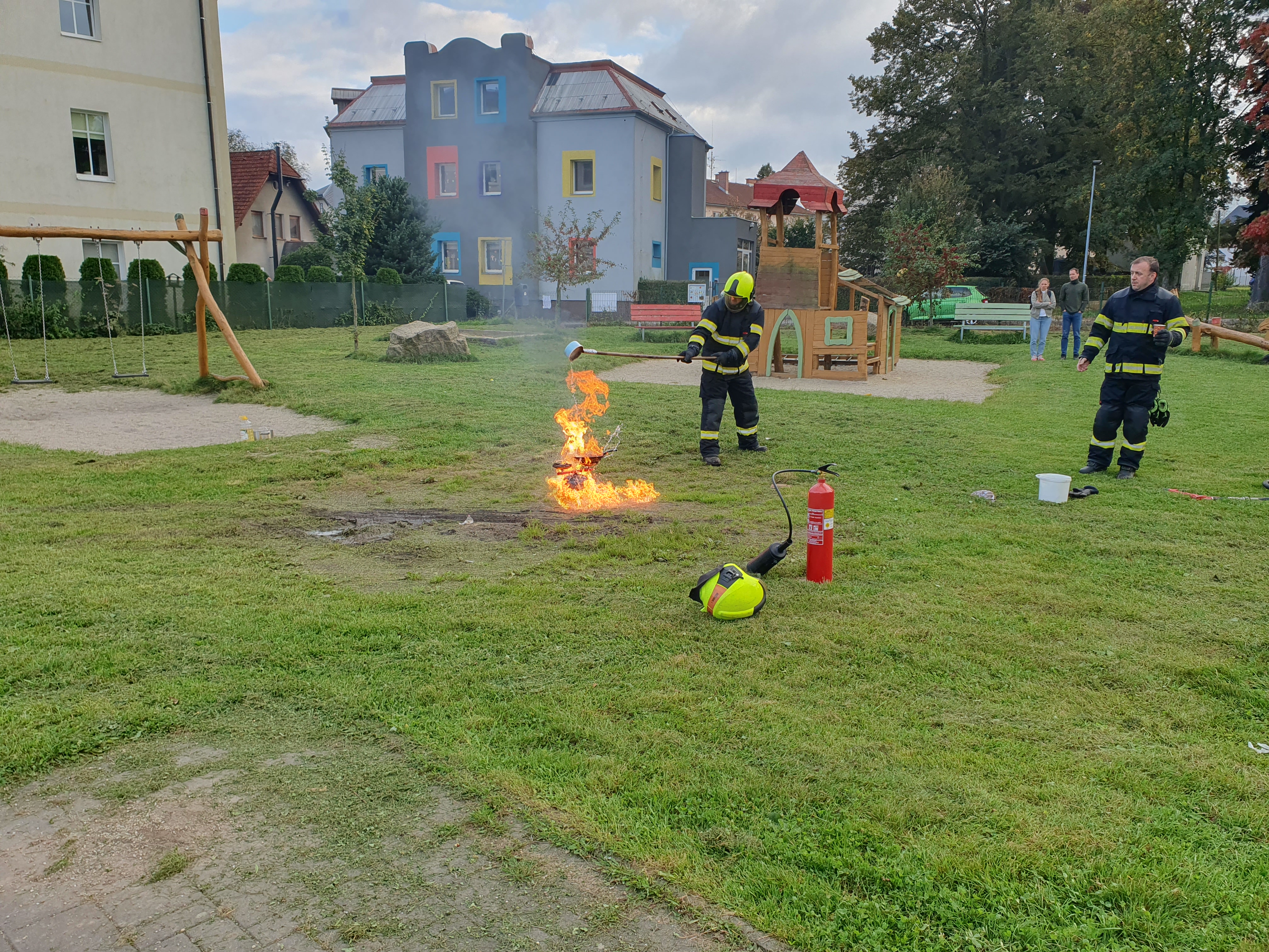 Šablony - ukázka hašení Ve středu 1.10. jsme pro děti připravili přednášku a ukázky hašení různými hasícími přístroji. Podpořeno v rámci dotačního titulu Šablony.