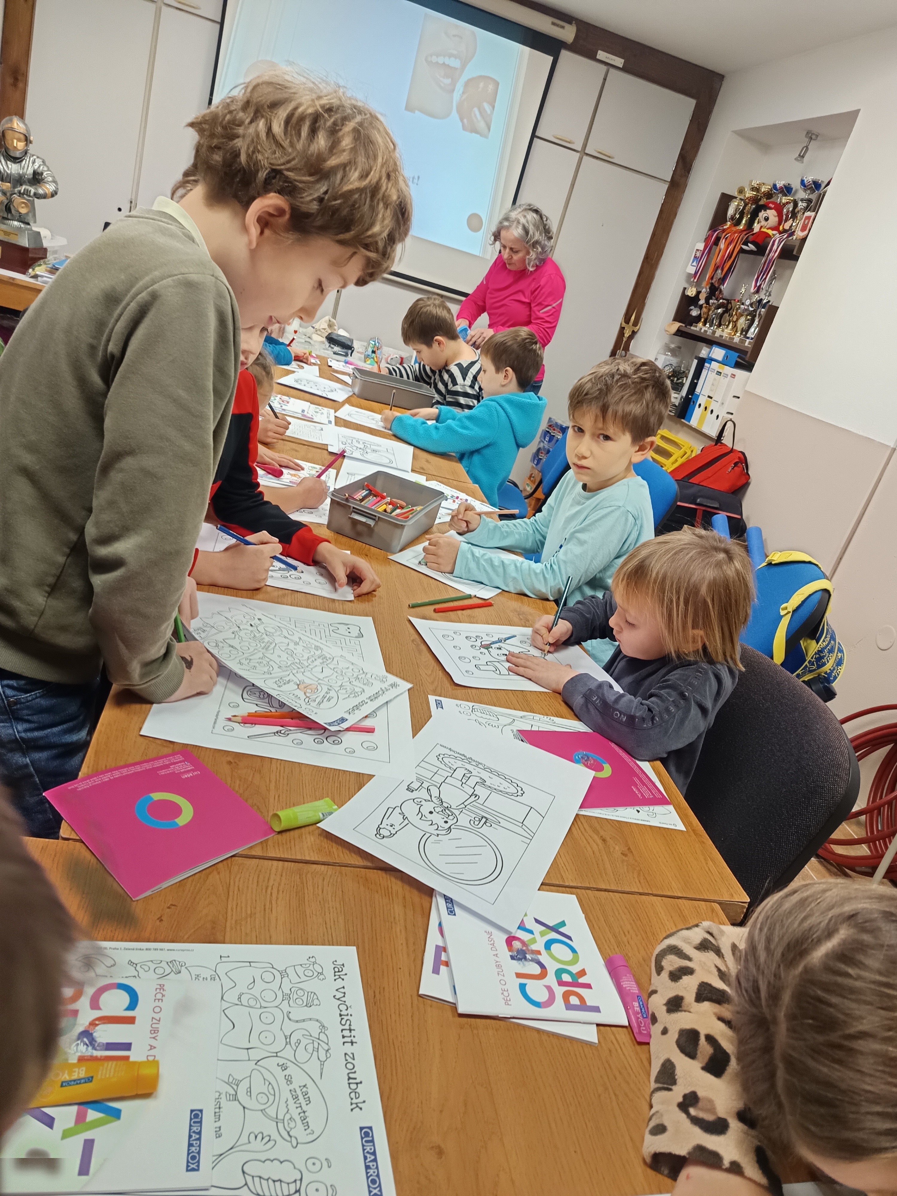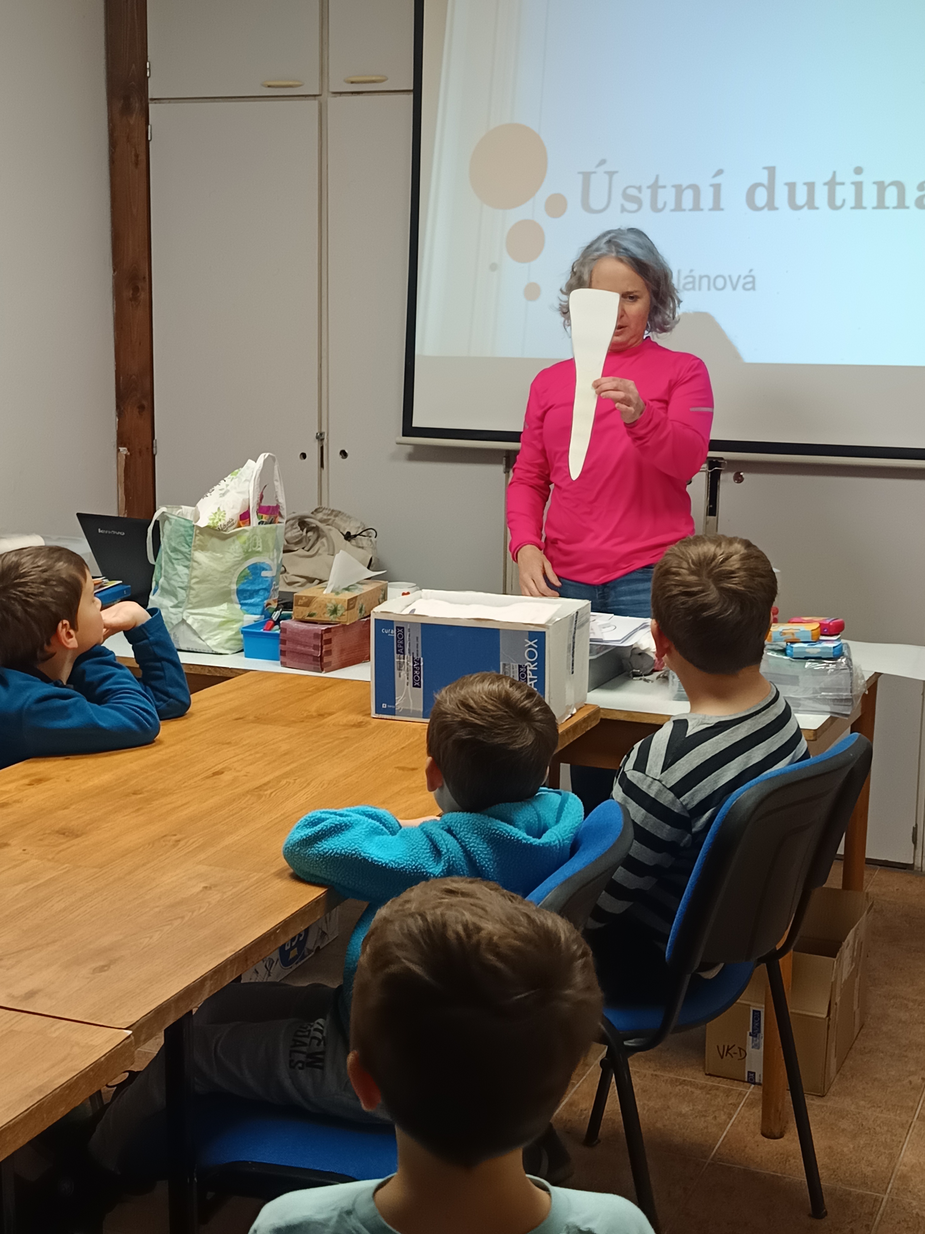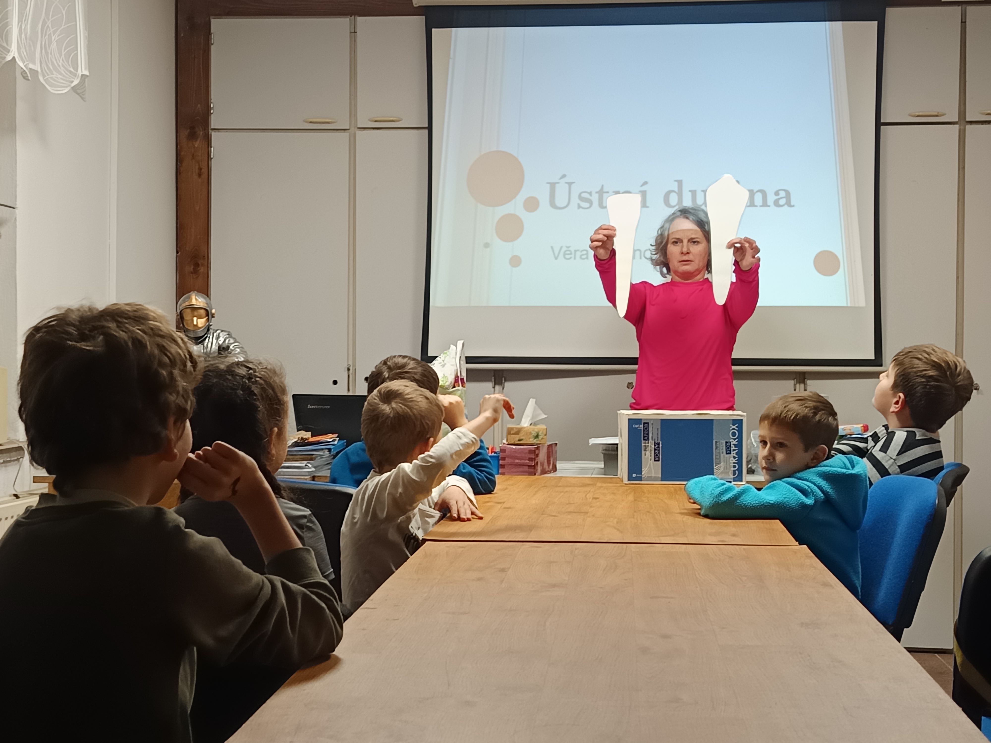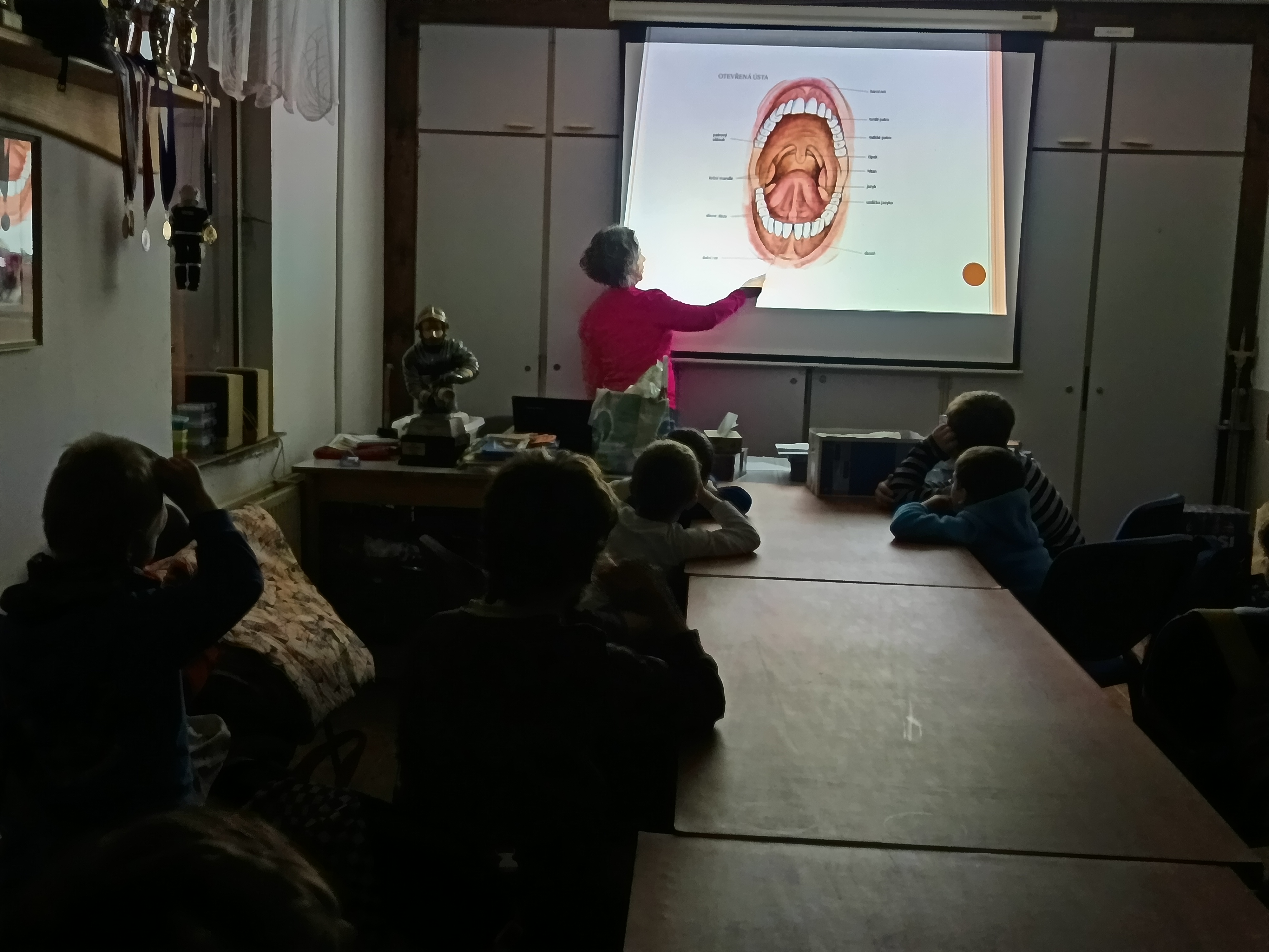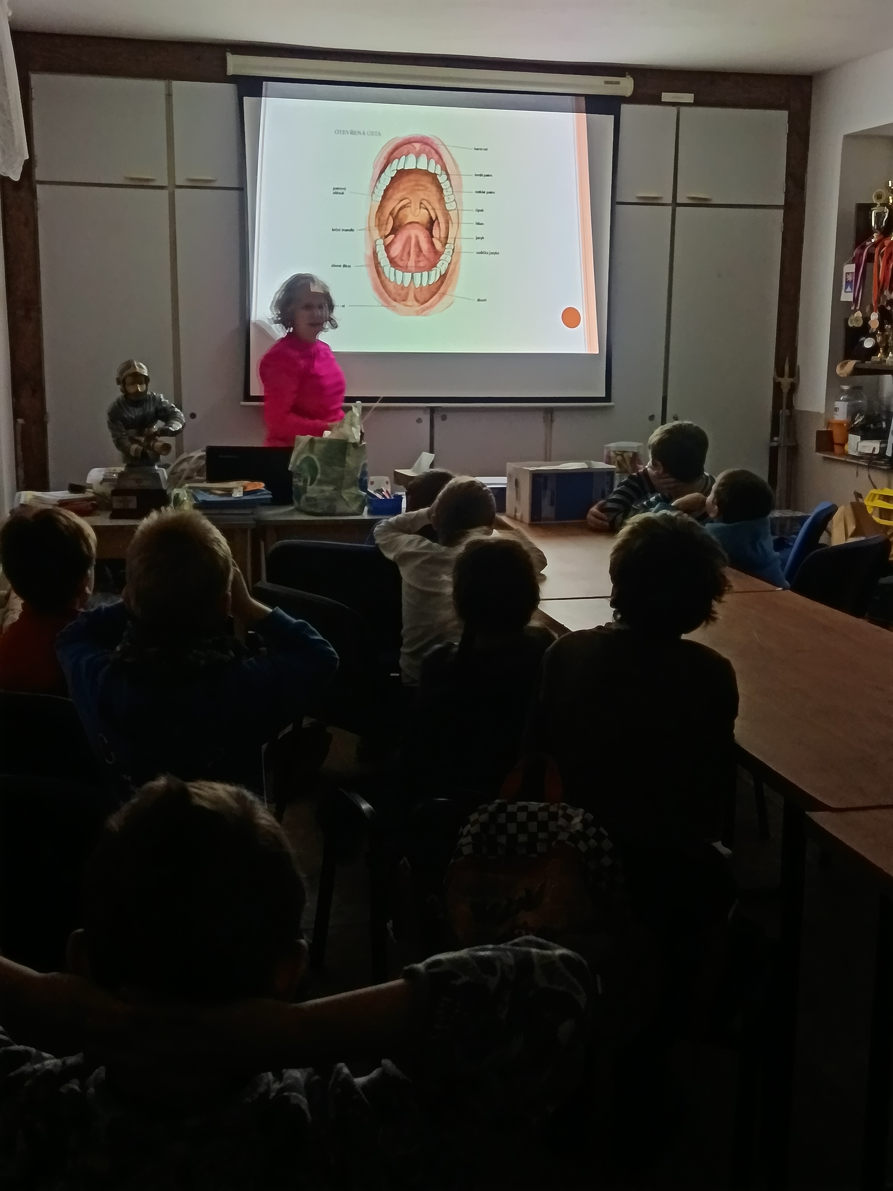 Přednáška péče o zoubky I tento rok našim dětem MUDR. Věra Palánová přednášela, jak se správně starat o zoubky, aby nepřišel ''červík Pepík''. Přednáška byla podpořena v rámci dotačního titulu Šablony.