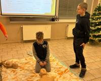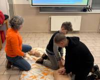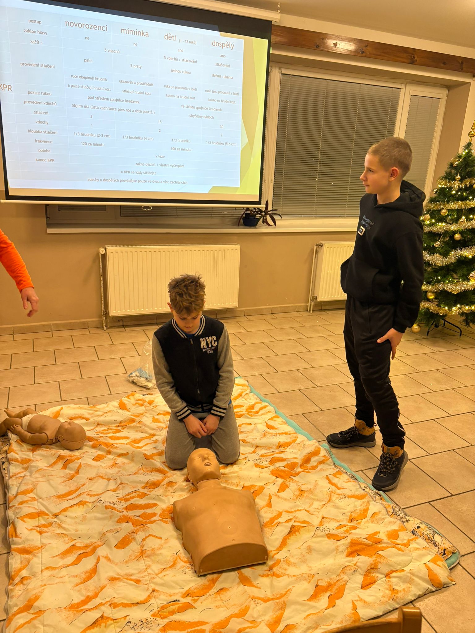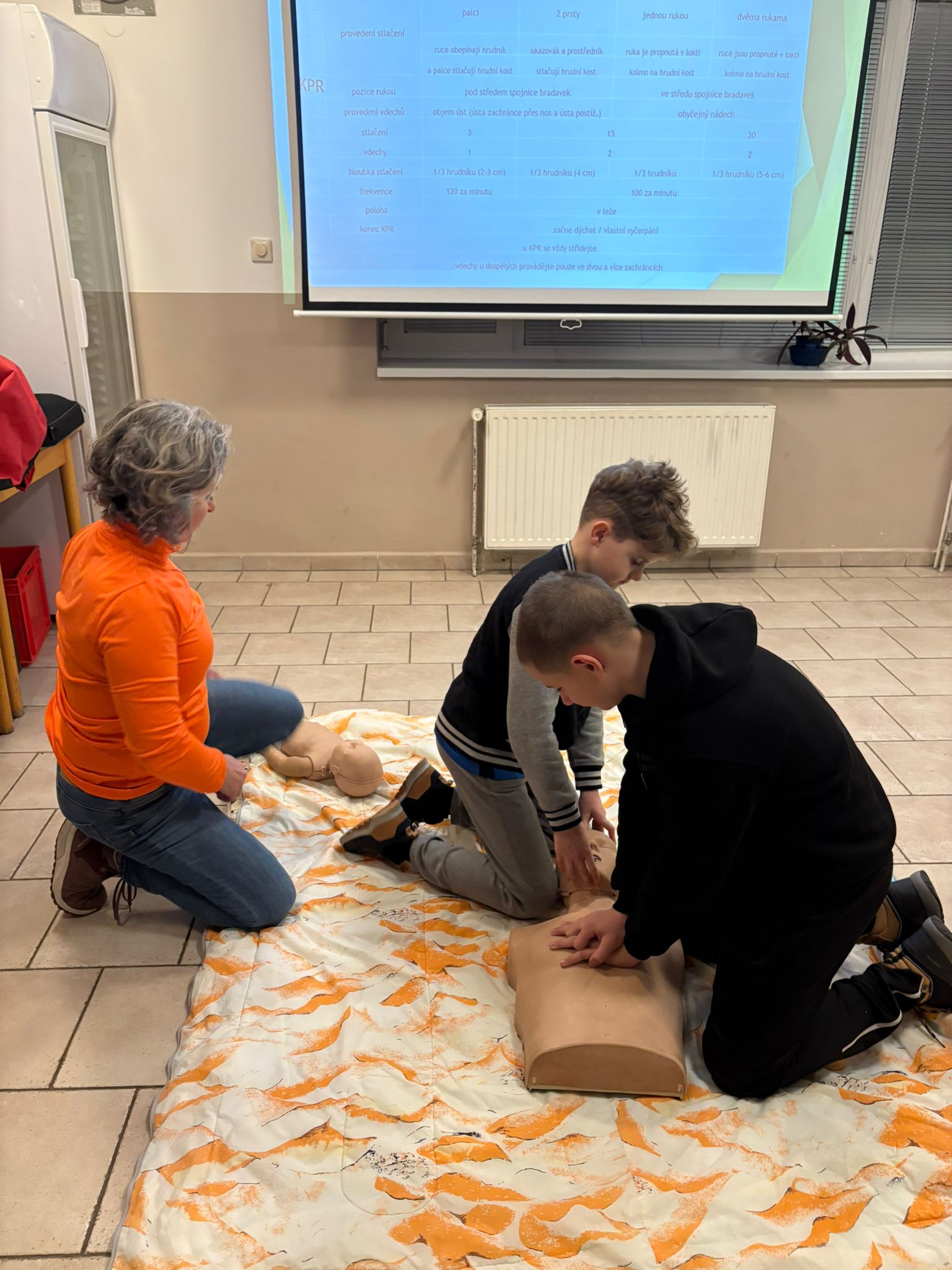 Přednáška - 1. pomoc resuscitace V rámci přednášek, které pro děti pravidelně připravujeme si dne 28.11. starší žáci vyzkoušeli provedení resuscitace. Přednáška byla podpořena v rámci dotačního titulu Šablony.